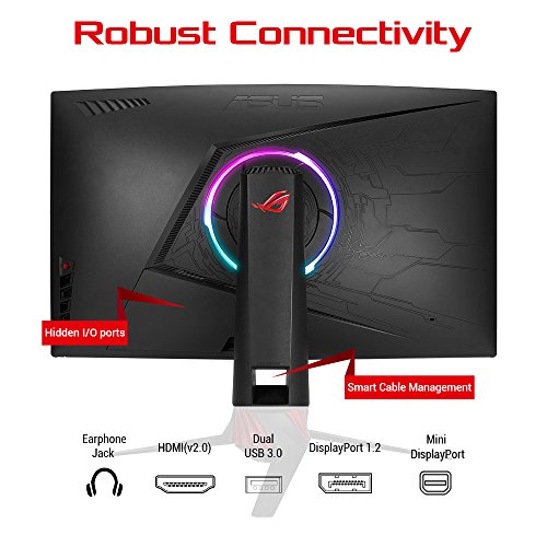 ASUS ROG Strix Curved XG32VQ, 32 Inch (31.5 Inch) WQHD (2560 x 1440), VA, Up to 144 Hz, 125 Percent sRGB, DP, HDMI, FreeSync, AuraSync. UK Power Supply.